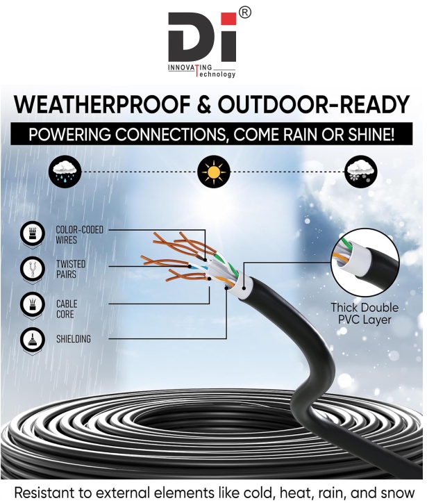 - CONSTRUCTION: Full copper core with double-jacket sheathing provides superior durability and reliable data transmission for outdoor installations