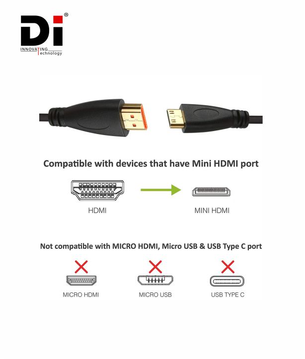 * The Mini-HDMI to HDMI cable connects Mini HDMI-enabled devices. Please check your device and make sure it is Mini HDMI port.