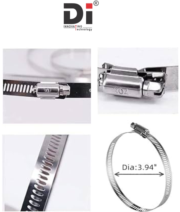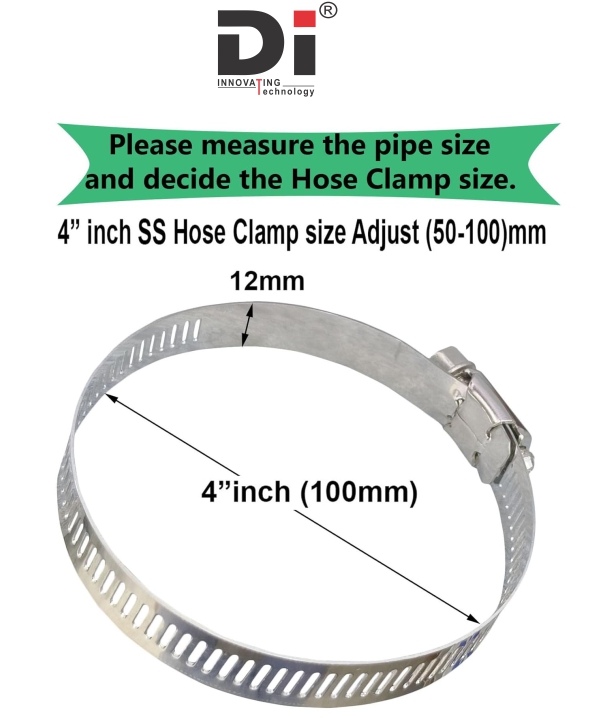 Adjustable Stainless‑Steel Hose Clamp (100 mm / 4″): A simple SS clamp ring, useful if you want to fasten something around a 100 mm pipe.
