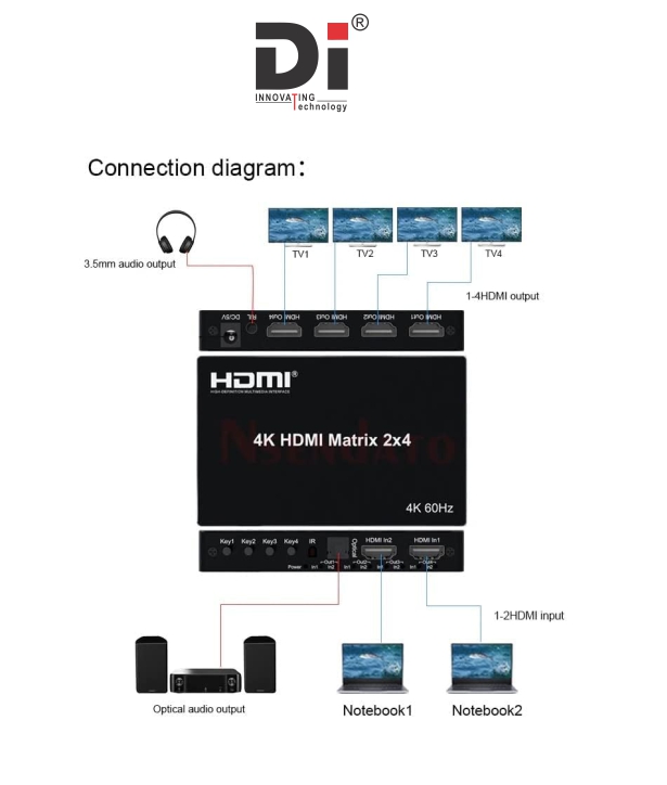 HDMI MATRIX 4 IN 2 OUT 4X2